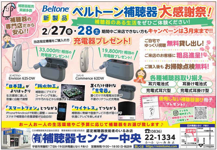 ベルトーン補聴器大感謝祭🎉 補聴器大感謝祭 開催のお知らせ 🎉 日頃のご愛顧に感謝を込めて、今月27日・28日の2日間限定で 🌸 補聴器大感謝祭 🌸 を開催いたします! 「最近、聞き返しが増えたな…」「補聴器って本当に自分に合うの?」そんな不安 […]